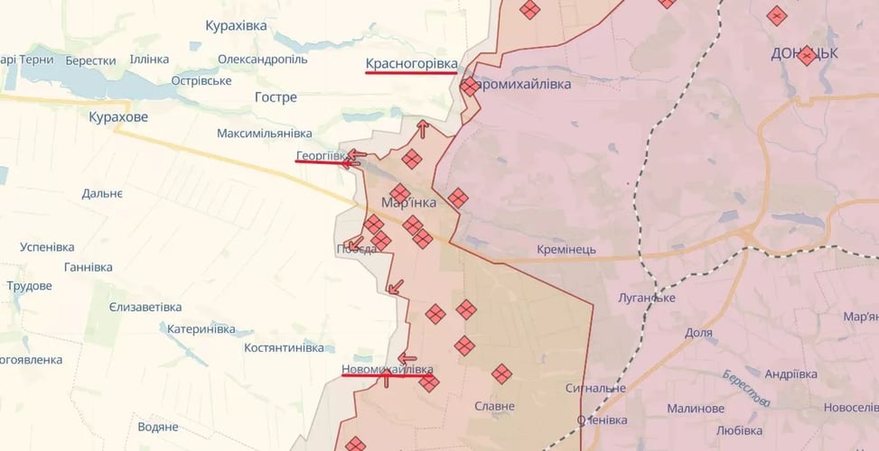 - в Донецкой области: Раздолевка, Семеновка, Александрополь, Очеретино, Новобахмутовка, Красногоровка, Парасковиевка, Константиновка, Новомихайловка, Великая Новоселка, Старомайорское, Урожайное;