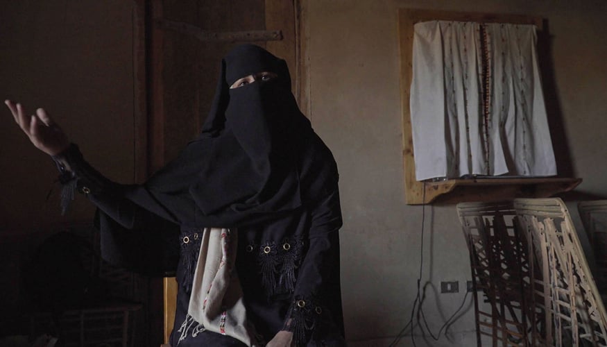Зал, запертый на ключ, представляет историю женской одежды и украшений. На манекенах яркие, расшитые бисером и цветными орнаментами открытые платья и медные украшения на волосы и лоб. Рядом стоит женщина, одетая в темный никаб, и единственное, что осталось от сиванки — это целенаправленный требовательный взгляд и большая традиционная синяя шаль, которая накрывает ее голову третьим слоем, скрывая ее истории и истинные устремления.