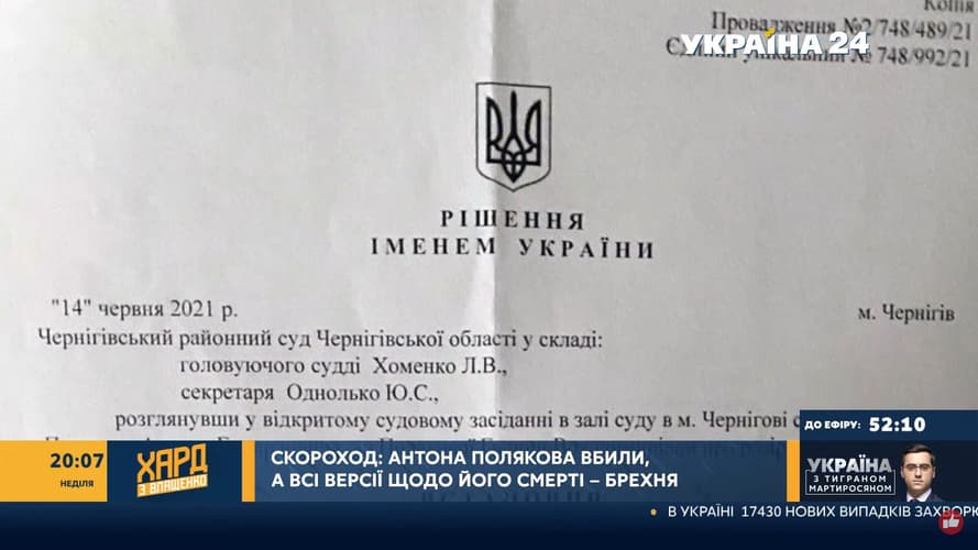 «Никто на сегодняшний день не объясняет борозду на шее от удушения, которая у него была. Я ее лично видела. В тот день, когда я приехала в морг, я видела ее в Чернигове, и почему-то здесь полиция не дает нам никаких объяснений», — утверждает Скороход.