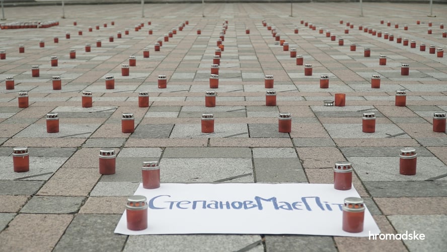 «Мероприятие демонстрирует, сколько людей умерли в результате политики Степанова. Вместо людей вы видите свечи и черные ленты. На этой площади лишь 1% тех, кто умер от COVID-19 за этот год», — отметила исполнительный директор благотворительного фонда «Пациенты Украины» Инна Иваненко.