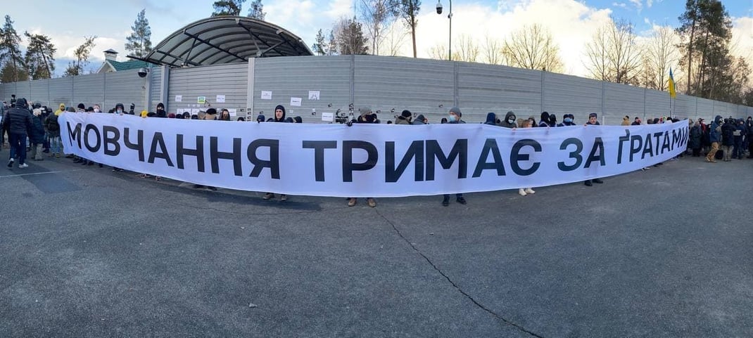 У государственной дачи президента Владимира Зеленского состоялась акция протеста с требованием отпустить из тюрьмы осужденного экс—лидера одесского отделения «Правого сектора» Сергея Стерненко и фигуранта дела Шеремета Андрея Антоненко.