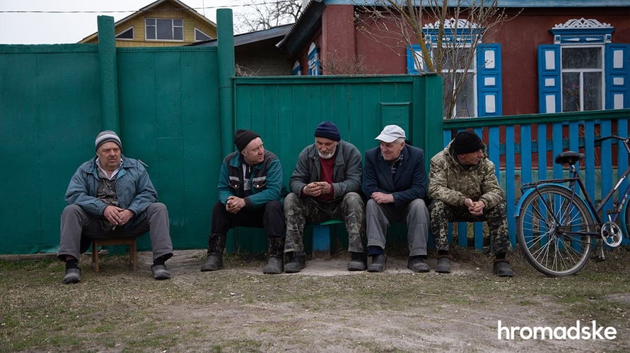 Из соседнего дома наконец выходит женщина. С ней — парень и девушка, с виду ученики выпускных классов. Девушка сразу же просит не снимать их. Они рассказывают, что люди напуганы, потому что боятся, что россияне вернутся. А с украинскими журналистами разговаривают тоже не хотят, потому что, по словам женщины, в селе немало пророссийски настроенных, а такие могут донести.