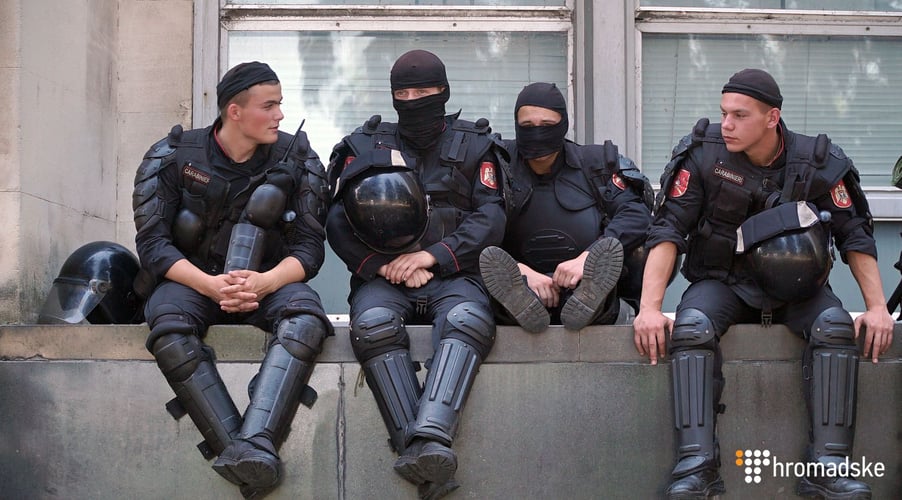 Прежде чем поговорить с человеком из руководства, я слышу кучу вопросов, вроде того, где моя аккредитация в Молдову, когда мы приехали и на каком телеканале работаем. Их задает мне заместитель главы Генинспектората полиции Георгий Кавкалюк, крепкий мужчина с хмурым лицом и беспроводными наушниками в ушах.