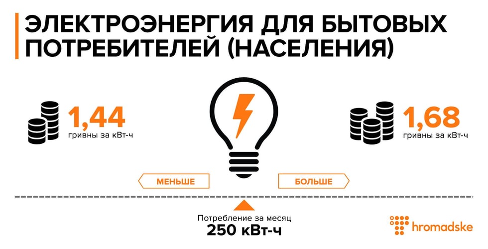 Поэтому с октября украинцы, которые потребили менее 250 кВт-ч, будут платить 1,44 грн за кВт-час. А вот если «намотали» больше — цена так и останется на уровне 1,68 грн.
