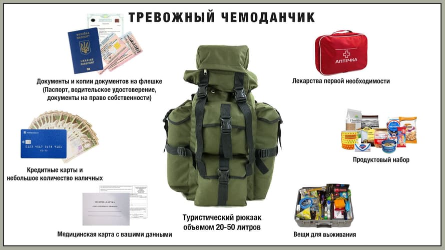 «Собранный заранее» означает до того, как произошло вторжение. Когда россияне нападут, из магазинов мгновенно исчезнет все необходимое. Так что собирать тревожный чемоданчик можно будет разве что из того, что найдете дома.