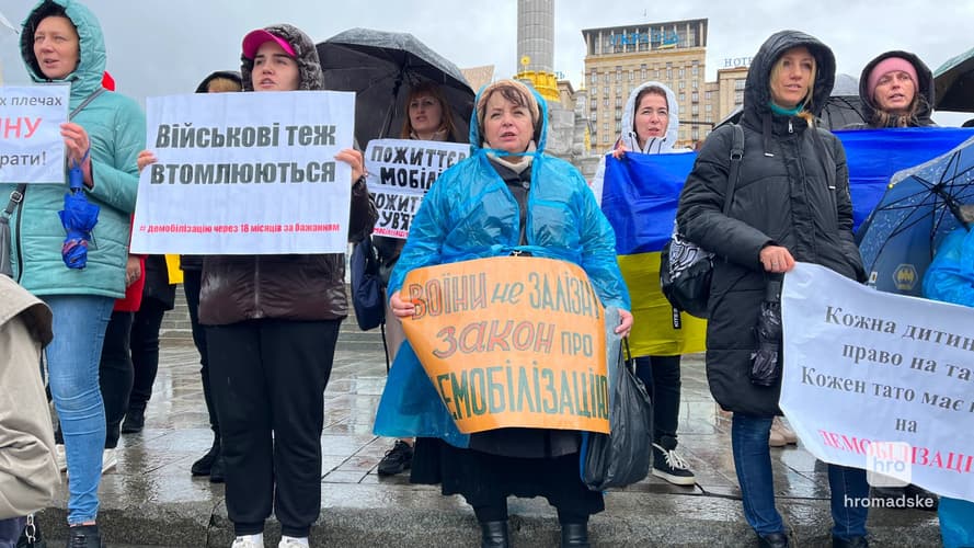 В разных городах тем временем проходят акции протеста родственников военнослужащих, которые воюют с первого дня войны. Из-за критической усталости воинов родные требуют права демобилизации после 18 месяцев службы.