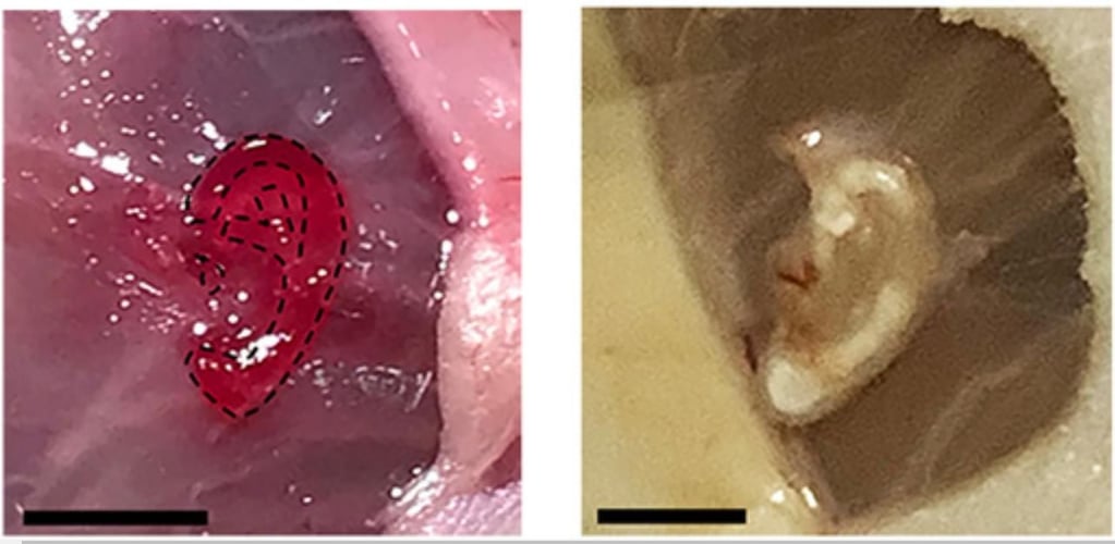 Ученые напечатали искусственное ухо под кожей живой мыши с помощью биопринтера