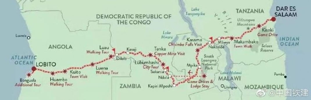 Трасса состоит из двух частей: Танзанской железной дороги, которую в 1970-х помогло построить правительство Китая, и железной дороги Бенгела, построенной Китайской железнодорожной строительной корпорацией и введенной в эксплуатацию в 2017 году.