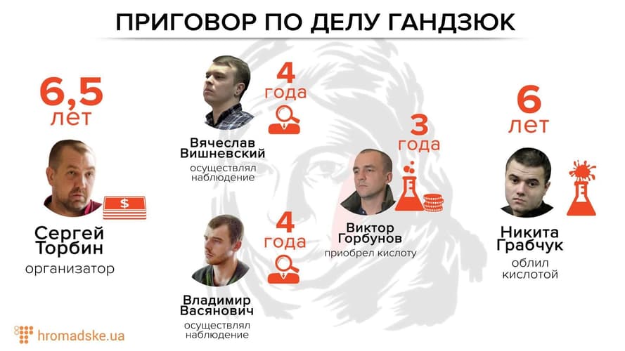 Напомним, 31 июля 2018 года Херсонскую активистку и советницу городского главы Екатерину Гандзюк облили кислотой. Она выполняла обязанности управляющего делами исполнительного комитета городского совета. Женщина с ожогами попала в реанимацию. 4 ноября 2018 года Екатерина Гандзюк скончалась в больнице. Активисты и знакомые сообщили, что она умерла от разрыва тромба.