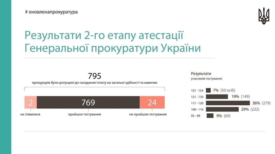 Завершился этап аттестации прокуроров Генеральной прокуратуры Украины, касающийся тестирования на общие способности и навыки. Экзамен успешно сдали 769 прокуроров.