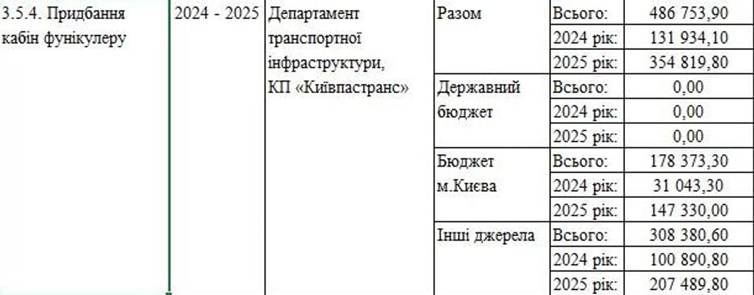 На закупку двух кабин фуникулера предусмотрено потратить 486 млн гривен. Эту сумму разделят на 2 года.