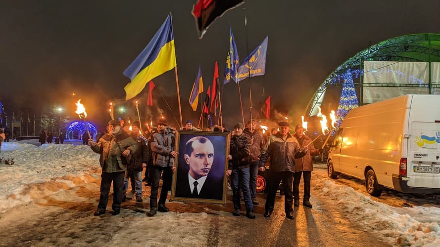 В Киеве прошло факельное шествие ко дню рождения Степана Бандеры