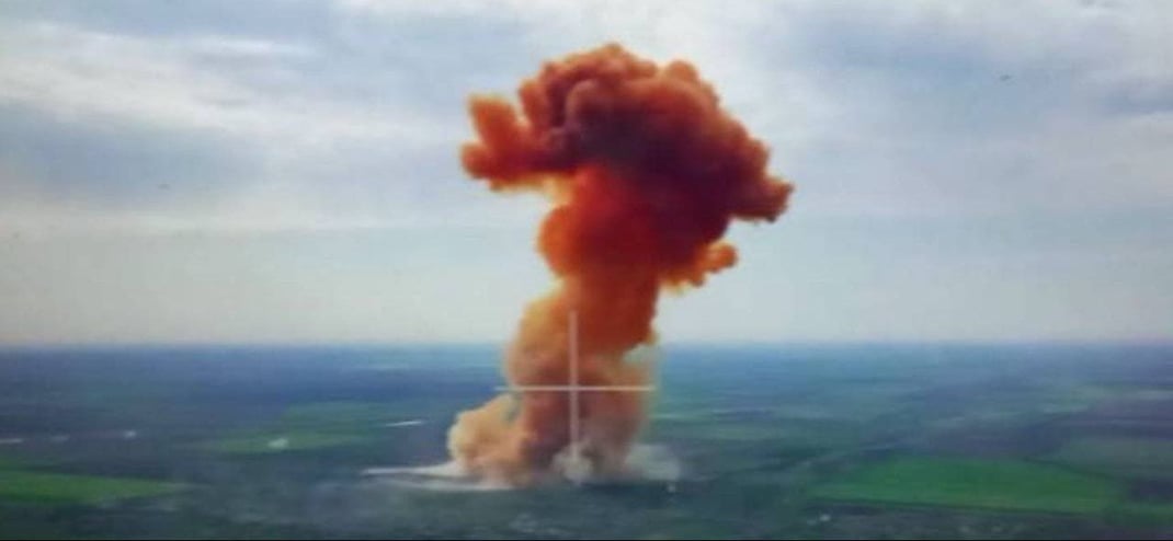 В Николаевской области под ударами российско—оккупационных войск оказалась селитра/нитроаммофоска — удобрения, которые используют аграрии. В небо поднялось густое рыжее облако.
