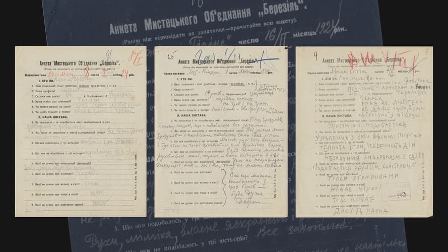 Теперь в Украине много предметов для выставок, связанных с «Березилем». Он вводит анкету, где у читателей спрашивают: поняли ли содержание пьесы, которой вы думаете об игре актеров, декорациях, костюмах, музыке, освещении сцены, чем отличается наш театр от других театров — в целом вопросов на два листа.
