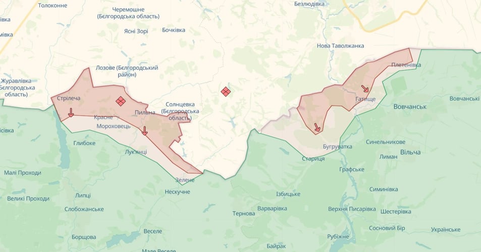российское Минобороны уже на следующий день после начала наступления заявило о захвате населенных пунктов Стрелечья, Пыльная, Борисовка, Огурцового и Плетеневка. То же позже подтвердили и аналитики проекта DeepState, добавив, что россияне пытаются двигаться в сторону Липцев и Волчанска.