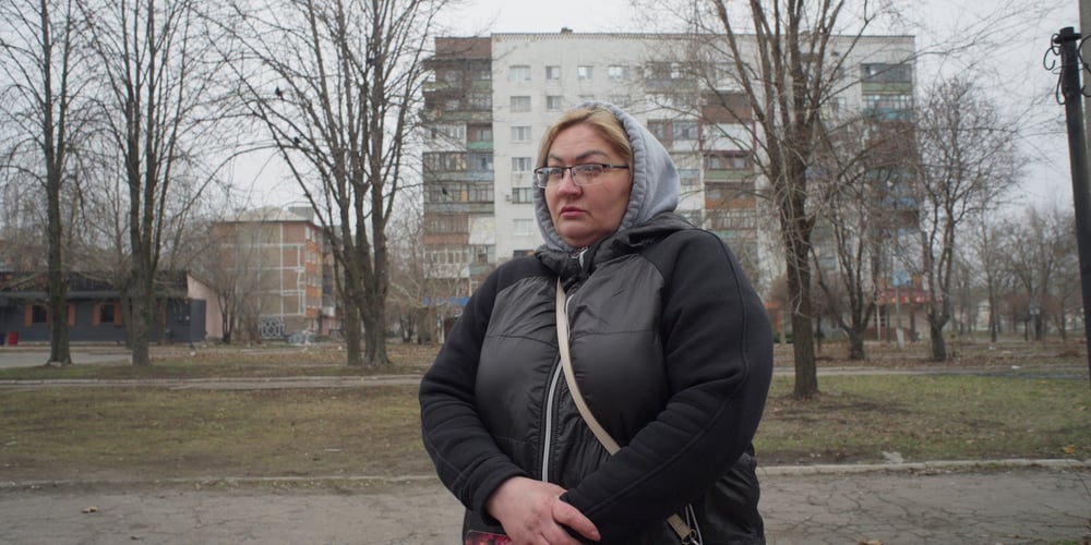 «Если будет какая-то возможность донести, что мы такие же люди, мы просто хотим жить… Мы не ждем никого, мы просто хотим быть в своем городе», — говорит она сквозь слезы, представившись Надеждой Ковальчук.