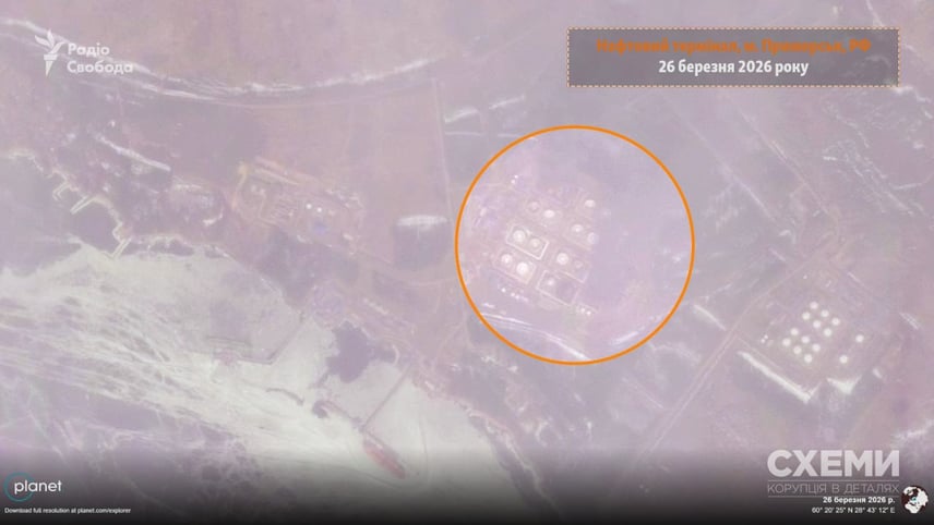 Нефтяной терминал в российском Приморске в ночь на 23 марта атаковали беспилотники Центра спецопераций «Альфа» СБУ совместно с другими подразделениями Сил обороны. После атаки на территории нефтетерминала начался пожар: горели резервуары с нефтью и нефтепродуктами.