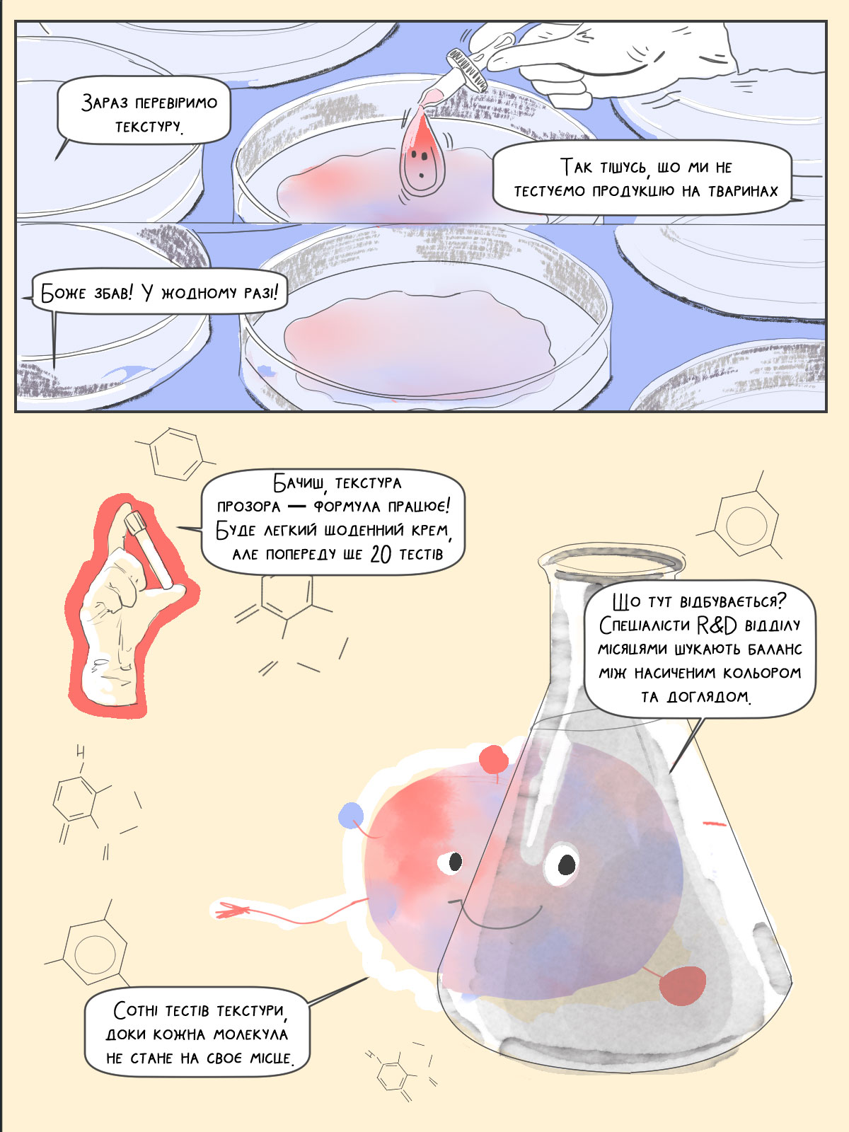 «Ходімо, покажу, як створюють косметику»: комікс про шлях від формули до вашої полиці