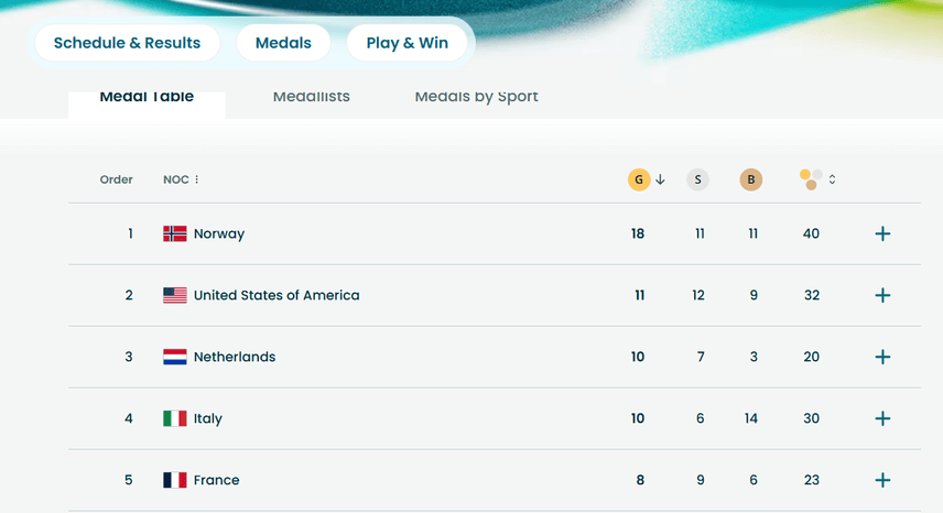 Для збірної Норвегії це четверта поспіль перемога у медальному заліку Олімпійських ігор. Востаннє команда не тріумфувала на Іграх 2010 року у Ванкувері, фінішувавши лише четвертою.