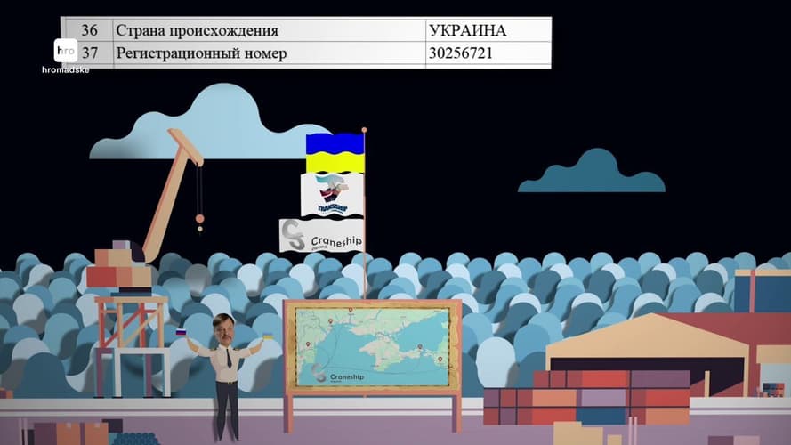 Ось довідка з російського реєстру юридичних осіб — така собі компанія «Трансшип-агент». Нас цікавлять рядки 36 і 37: країна походження — Україна, реєстраційний номер — код з нашого реєстру юридичних осіб. Він належить компанії «Трансшип», одним із засновників якої донедавна був одеський бізнесмен Андрій Іванов. Тобто цю компанію після окупації Криму перереєстрували в росії за тамтешніми законами. Усі ці роки вона прекрасно працювала, і лише кілька місяців тому її вирішили закрити.