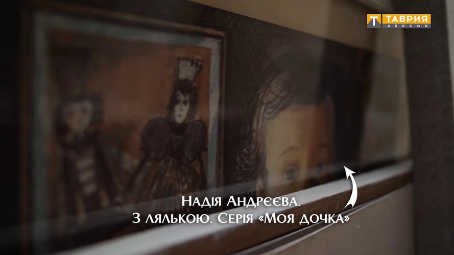 Музейники знайшли картину в сюжеті російського телеканалу, який зняли в серпні 2023 року в Центральному музеї Тавриди. Йдеться про роботу Надії Андрєєвої «З лялькою» із серії робіт «Моя дочка».