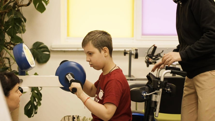 Марта каже, що в реабілітації Єгора важливу роль відіграли не лише медики, які шукають до кожного маленького пацієнта індивідуальний підхід, а й комплекс обладнання, за допомогою якого дитина виконує фізичні вправи. Коли вдається «політати», пострибати чи полежати на масажерах або реабілітаційних «гойдалках», заняття для дітей минають значно цікавіше, а це напряму впливає на результативність. Проте для багатьох центрів таке обладнання поки що недосяжне, бо коштує дорого.