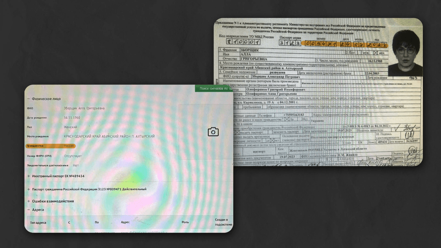 За тим російським паспортом Алли Зборщік, який вдалося знайти журналістам hromadske, у російських реєстрах також можна побачити актуальний ідентифікаційний код платника податків мами української посадовиці.