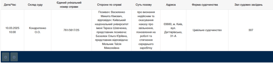 Позивачем у справі є сам Василенко, а от відповідачем — КНУ.