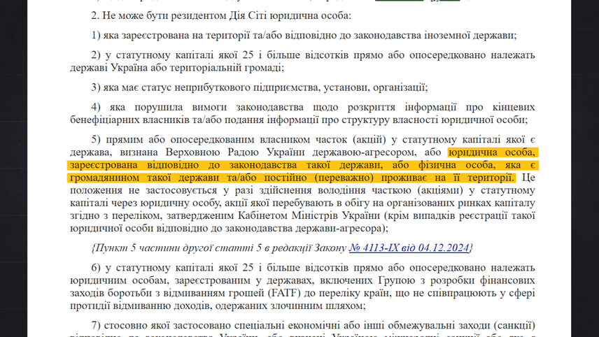 Відтоді резидентами «Дія.City» не можуть бути компанії, які: