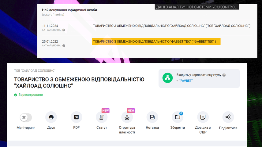 Рік тому «Фавбет Тек» змінила назву на «Хайлоад Солюшнз». Проте компанія як входила до корпоративної групи Favbet, так і входить.
