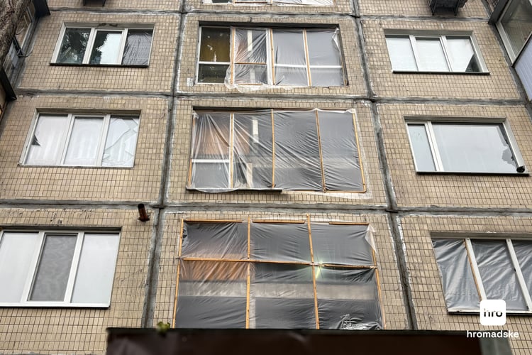 У другому підʼїзді, де продовжують мешкати люди, на сходовій клітці вікна закриті клейонкою. Більшість квартир уже з новими вікнами (деякі мешканці встановлювали їх своїм коштом). Утім, все ж є квартири, як у пані Тетяни та її доньки, без вікон.