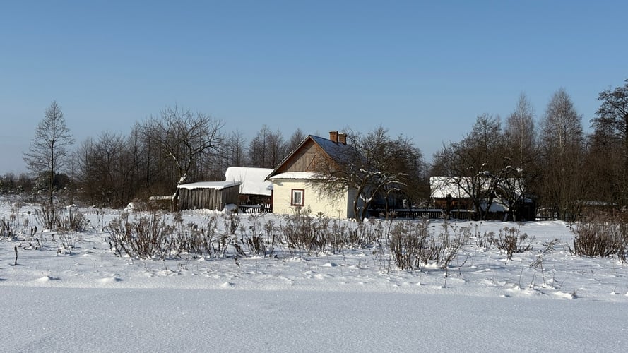 Від Моквина (де живе близько трьох тисяч людей) я дійшов до Ніни приблизно за годину. Були місця, де провалювався у сніг вище колін.