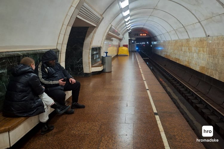 Того вечора, коли ми прийшли, на «Дорогожичах» ночували до трьох десятків людей. Загалом у ночі без тривог їх буває до 500 на всіх станціях метро.