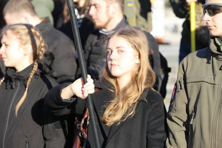 У Києві сьогодні, 14 березня, до Дня українського добровольця за ініціативи правих організацій відбувся марш, присвячений людям, які добровільно вступали й вступають до війська для відсічі російській агресії. Серед лозунгів лунали й заклики до «традиційної сімʼї».