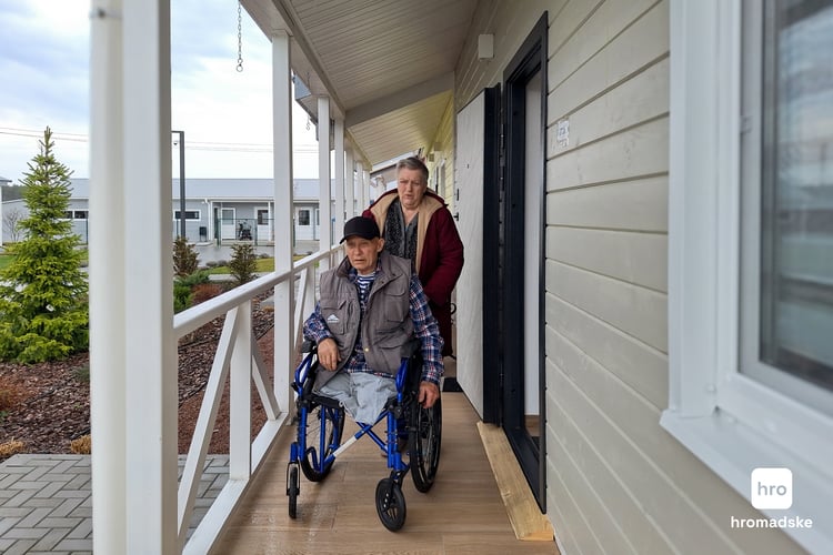 «Нас привезли сюди, у Київську область, у це “Чудо-містечко”. Тут чекав повний стіл продуктів, раз на день отримуємо готовий обід, є огляди лікарів, є де погуляти з колісним кріслом. Нам ще два подарували, одне — електричне. Усі навколо дуже привітні. Мали відеорозмову через інтернет із засновником містечка Хансеном, він знайомиться особисто з усіма жильцями. Ми і йому, і Вадиму будемо вдячні, поки очі навік заплющимо», — вимовляє з болем Наталя. І додає: