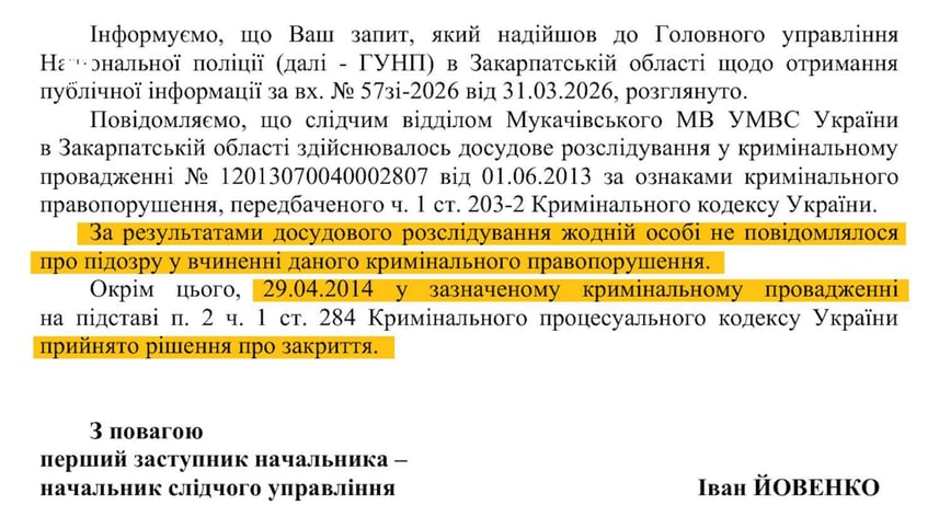 «За результатами досудового розслідування жодній особі не повідомлялося про підозру у вчиненні даного кримінального правопорушення», — повідомили нам у поліції і додали, що у квітні 2014 року справу закрили.