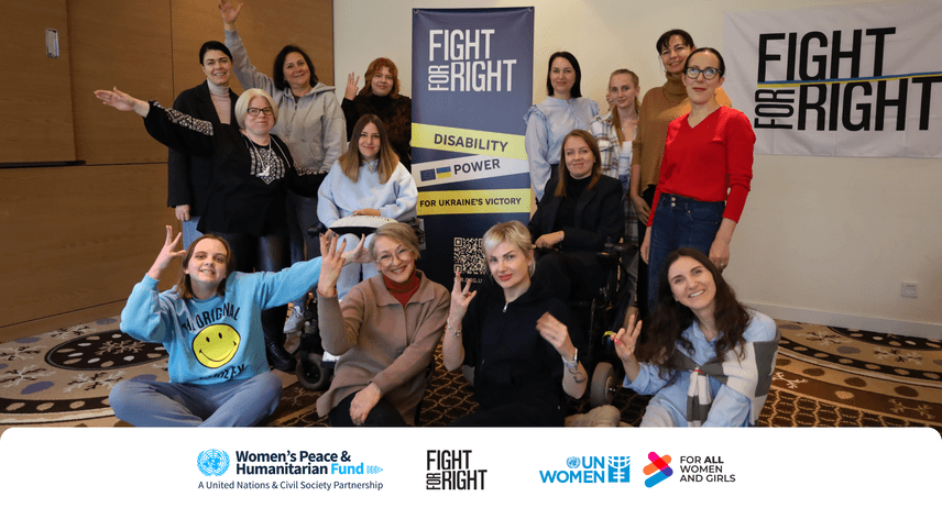 Громадська організація Fight For Right допомагає жінкам з інвалідністю бути видимими: спонукає ініціювати зміни, навчає лідерства, дає гранти на втілення ідей і створює середовище, де можна ділитися переживаннями й відчути підтримку. Таку діяльність організація проводить, зокрема, за технічної підтримки ООН Жінки в Україні та за фінансування Жіночого фонду миру та гуманітарної допомоги ООН (WPHF).