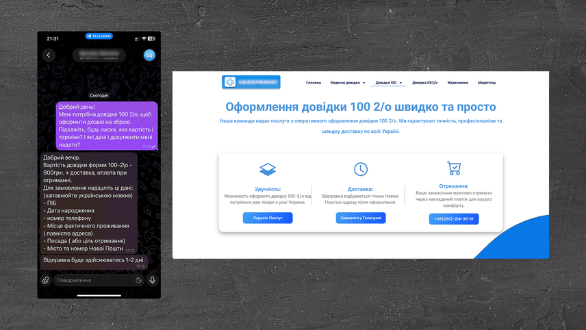 Знаходжу в інтернеті медичні установи, які видають такі довідки, обіцяючи, що це займе «не більш ніж 30 хвилин». Дзвоню. Попередній запис не потрібен, медичні документи чи аналізи теж. Тільки дві фотокартки й паспорт.
