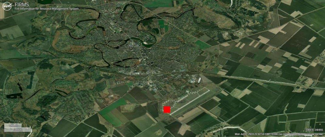 Пожежу в районі аеродрому Миргорода за останні 24 години зафіксували супутники спостереження, свідчить мапа NASA.