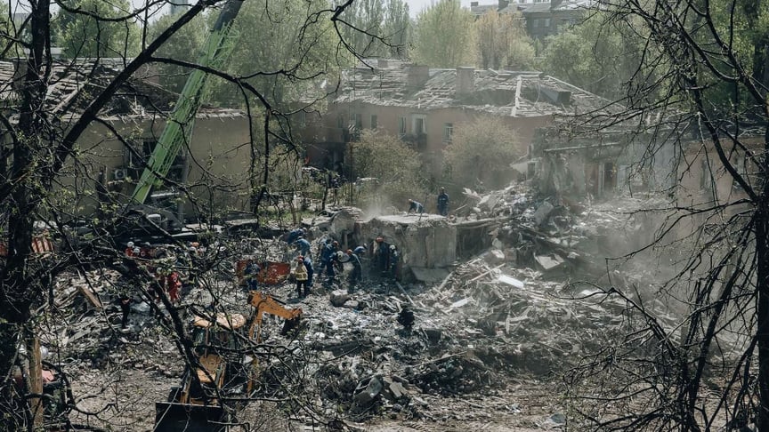 У ніч проти 24 квітня російські війська завдали масованого удару по Києву ракетами та дронами. Руйнувань зазнали різні об’єкти в кількох районах столиці. Найбільше постраждав Святошинський район — там окупанти поцілили ракетою в житловий будинок. Пошкоджено цілий житловий квартал.