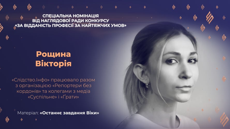 Журналістка Вікторія Рощина посмертно отримала відзнаку «За відданість професії за найтяжчих умов» у конкурсі професійної журналістики «Честь професії 2025».