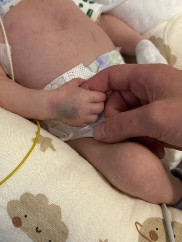 До Назарчика їздять бабуся і тато. І тітка Оксана наглядає, як за своїм власним дитям. Родичі уже брали його на руки — і вперше після довгих тижнів у реанімації серед трубок і апаратів маля відчуло доторк рідних рук.