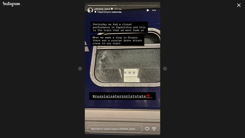 Учасники українського гурту Ziferblat потрапили під російську дронову атаку, коли потягом повертались із Запоріжжя.