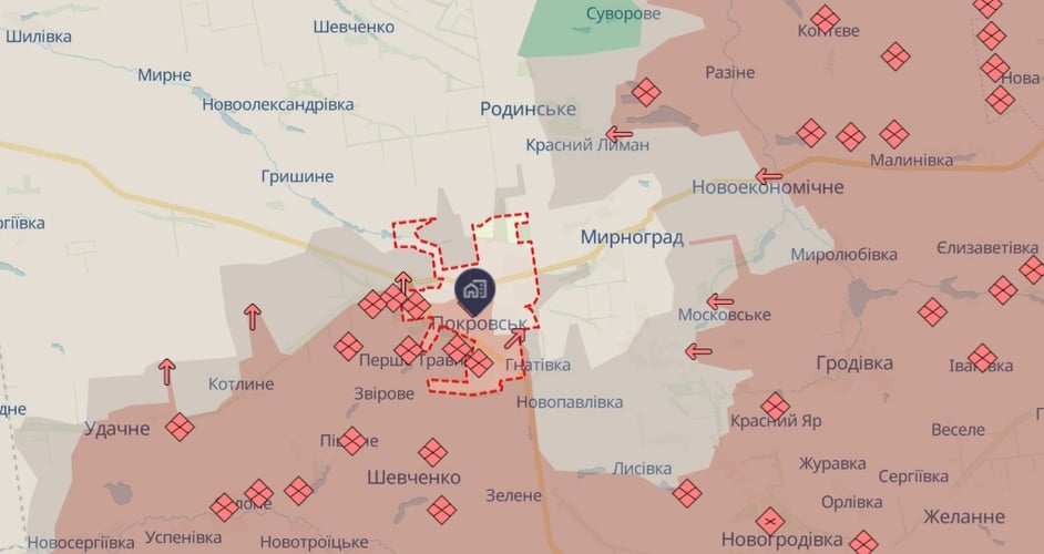 Аналітики моніторингового проєкту Deep State зазначають, що ситуація залишається критичною, але битва за Покровськ та Мирноград триває. За даними проєкту, росіяни розпорошуються по Покровську та його околицях, намагаючись встановити фізичний контроль у районі. Найбільше фіксацій ворога здійснюється в центральній та північній частинах міста. З боку Сил оборони України тривають спроби зачищати окремі райони.