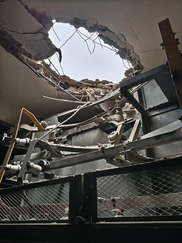 Група опублікувала фотографію, на якій видно пробиту стелю будівлі ТЕЦ, зазначивши, що це лише одне з численних пошкоджень.