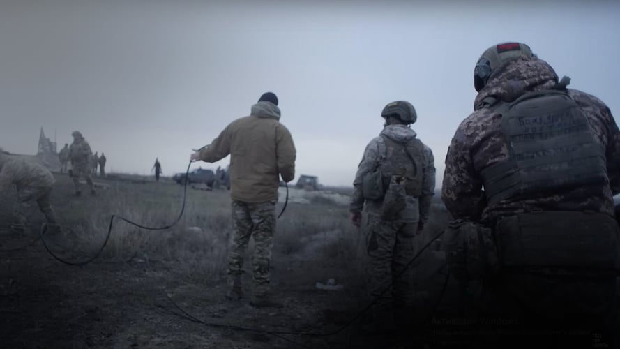 Чіча прикручує снаряд до «мавіка» в гаражі із червоним світлом, який став майстернею для його підрозділу. Зарядивши дрон, виходить на вулицю і кладе його на платформу, звідки той злітає і летить виконувати завдання на південь від Покровська.