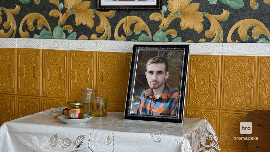 На веранді ще стоїть довгий стіл, де недавно були поминальні обіди. Біля стіни, обклеєної шпалерами з квітковим орнаментом, — портрет Тараса. Ми підходимо, щоб вшанувати пам’ять.
